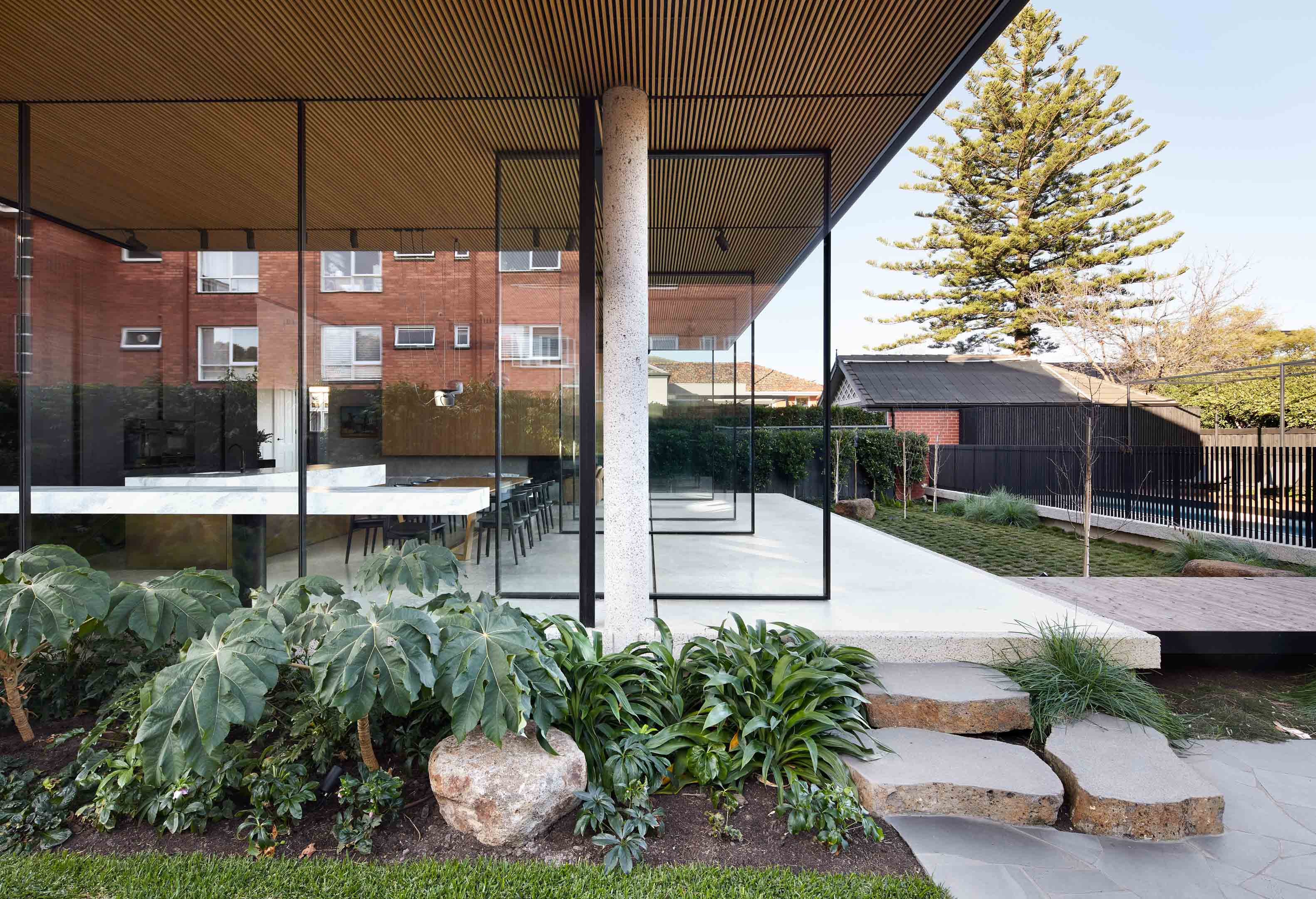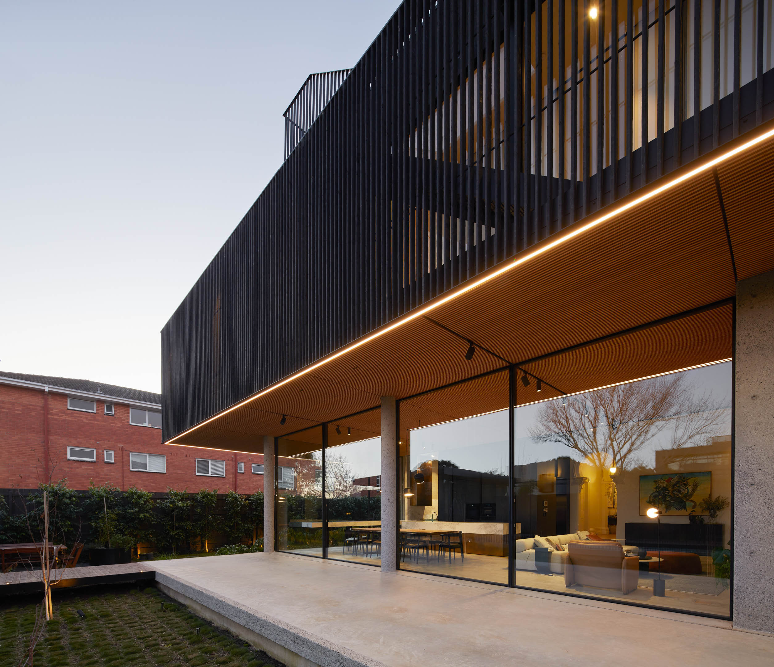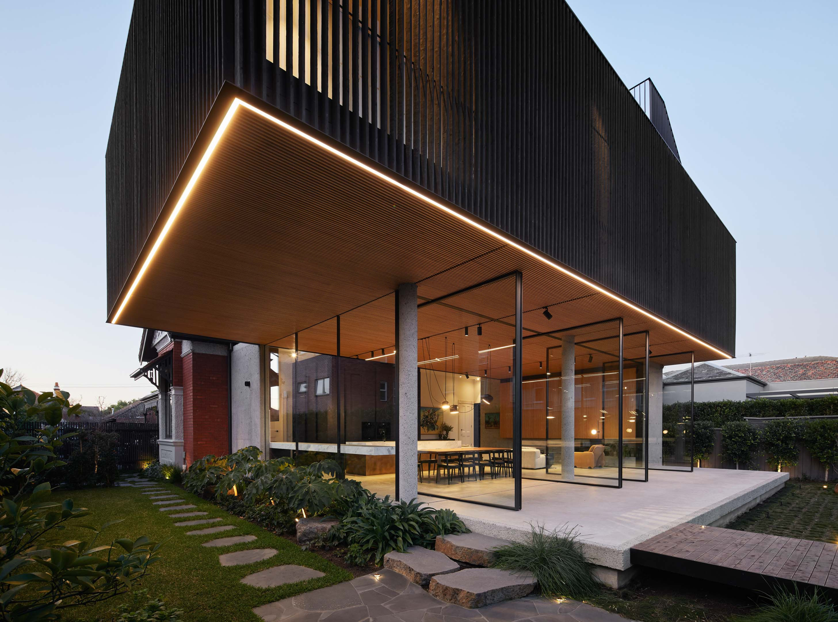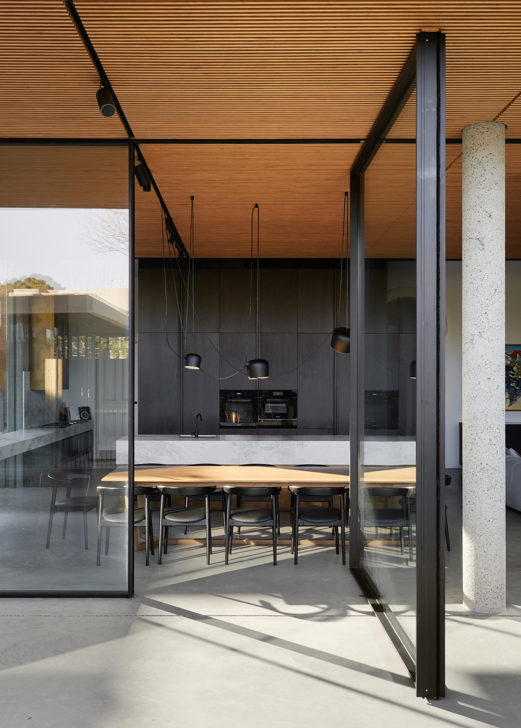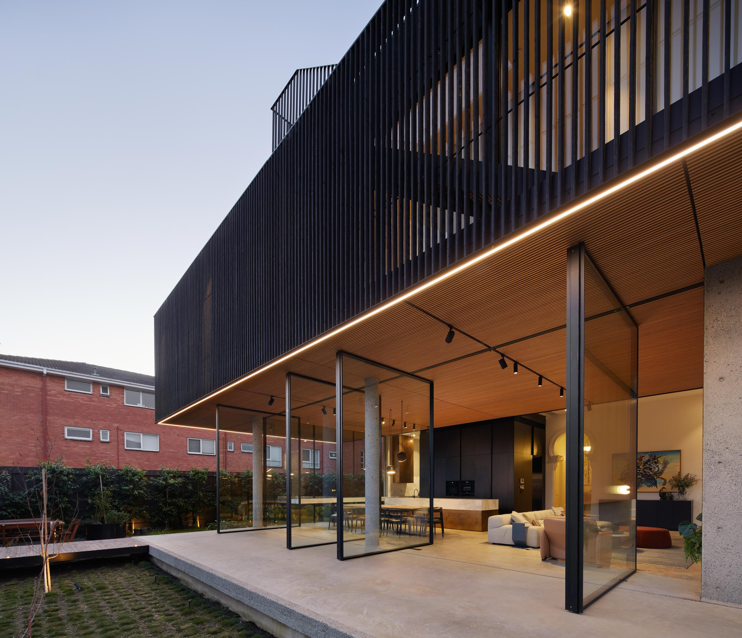 For this project in Hawthorn, Victoria, the use of large Pivot doors maximises the opening onto the backyard.