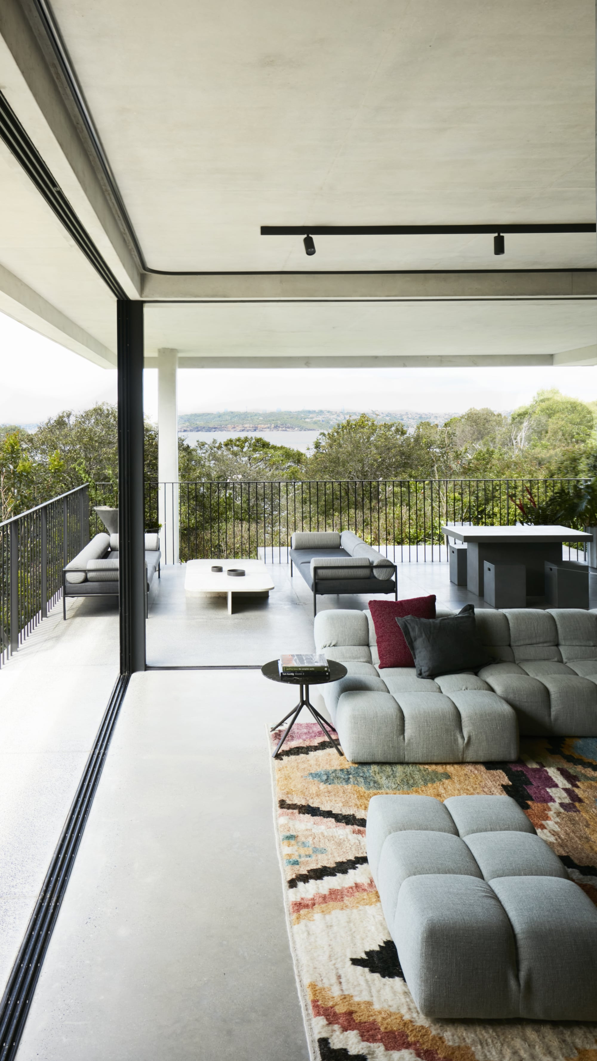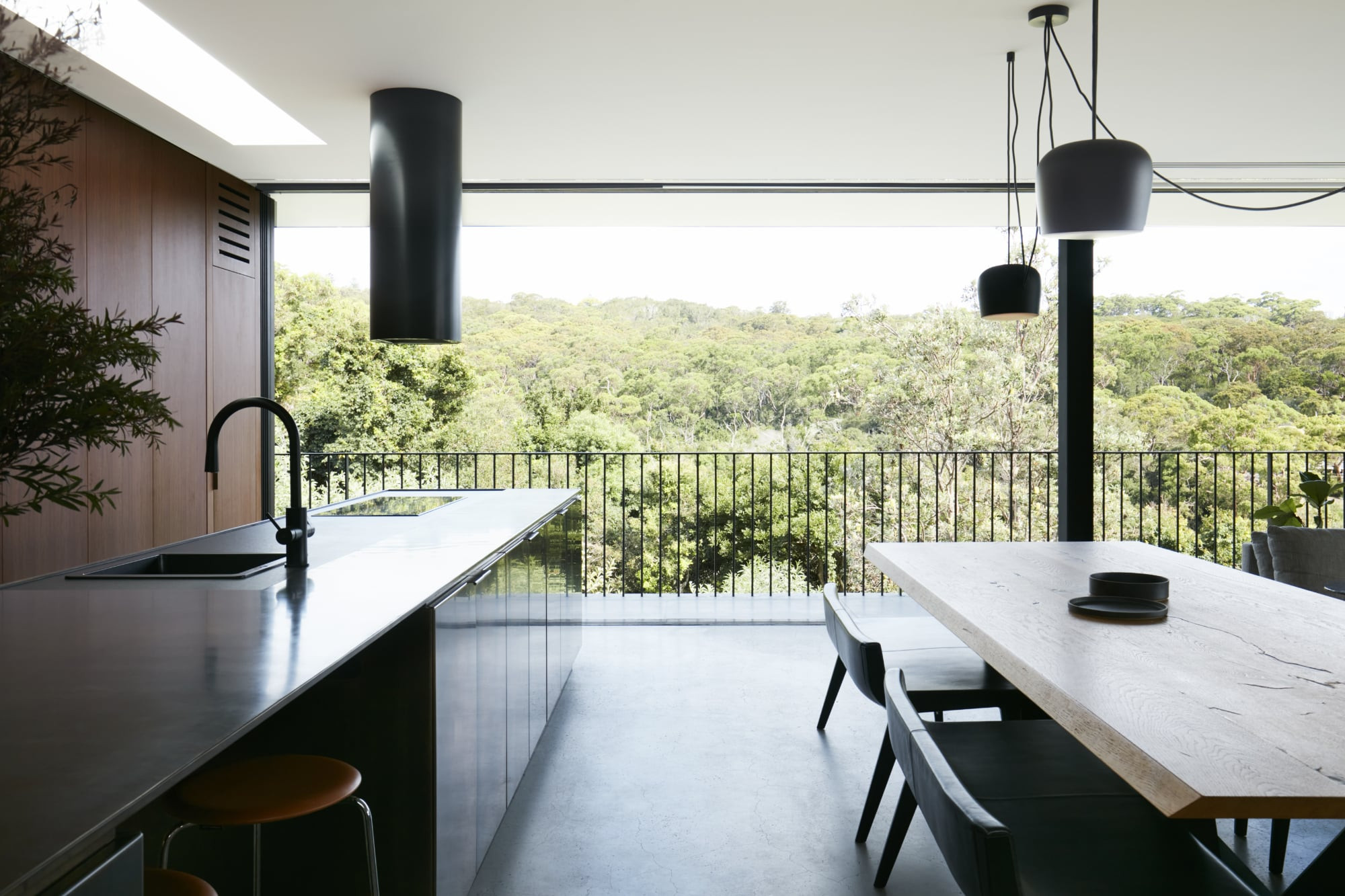 “The materiality combines off form concrete to the floors, walls and ceilings throughout, combined with a backdrop of rich, grey ironbark timbers, bronze and landscaping.”