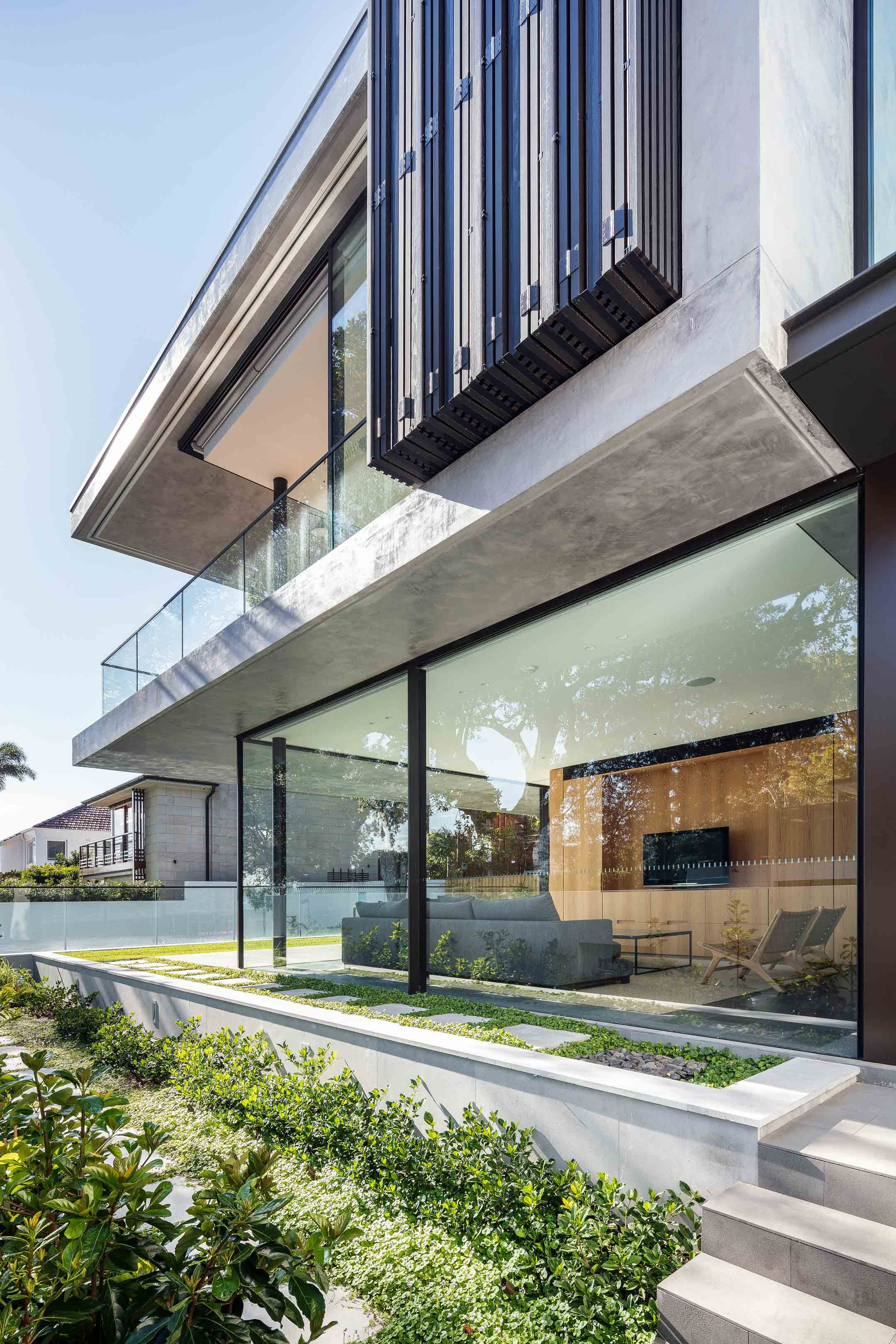 “Internal planning is rationalized to provide more outdoor space with more sun. Living areas are flipped to the first-floor level for better access to the view of Double Bay Beach.