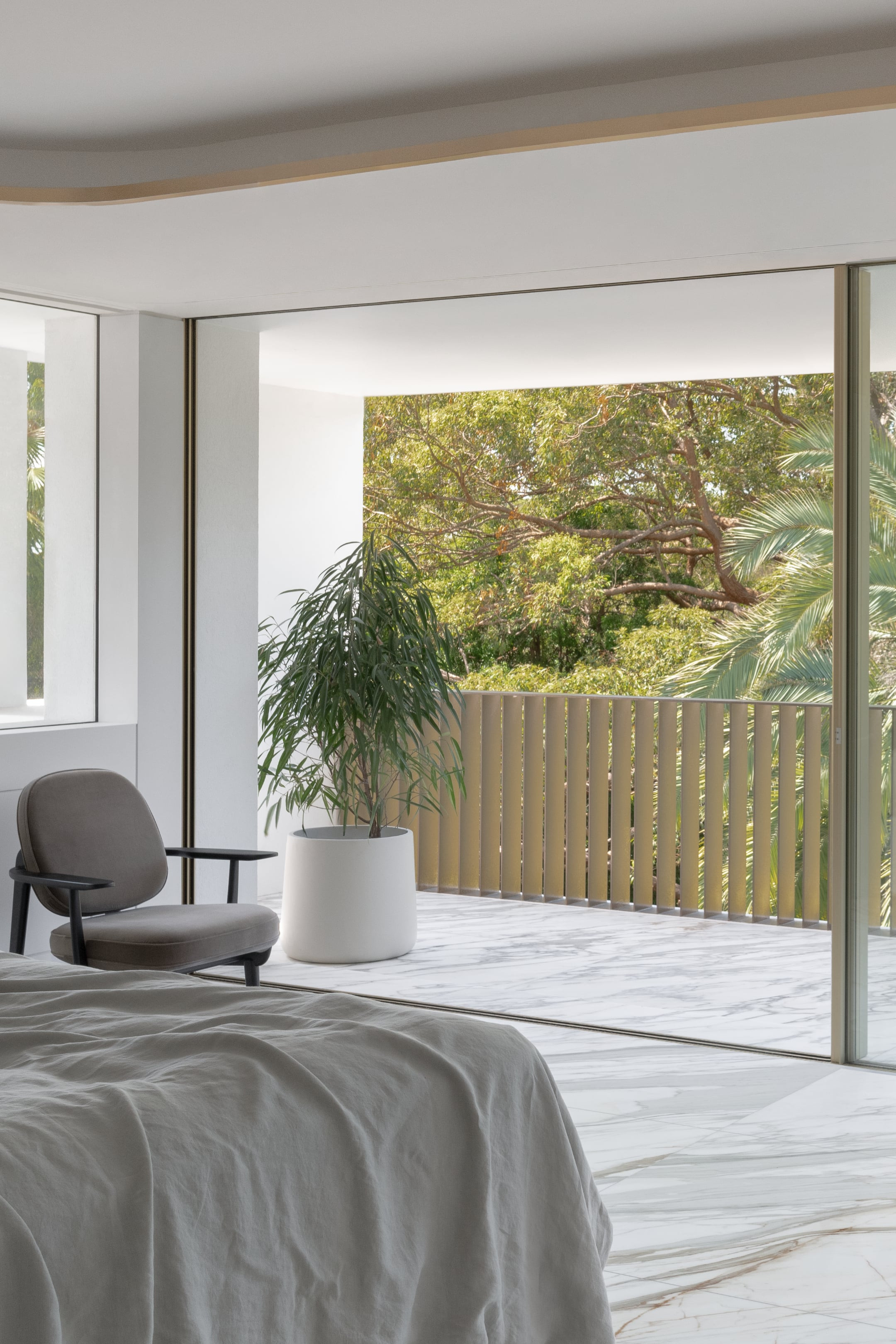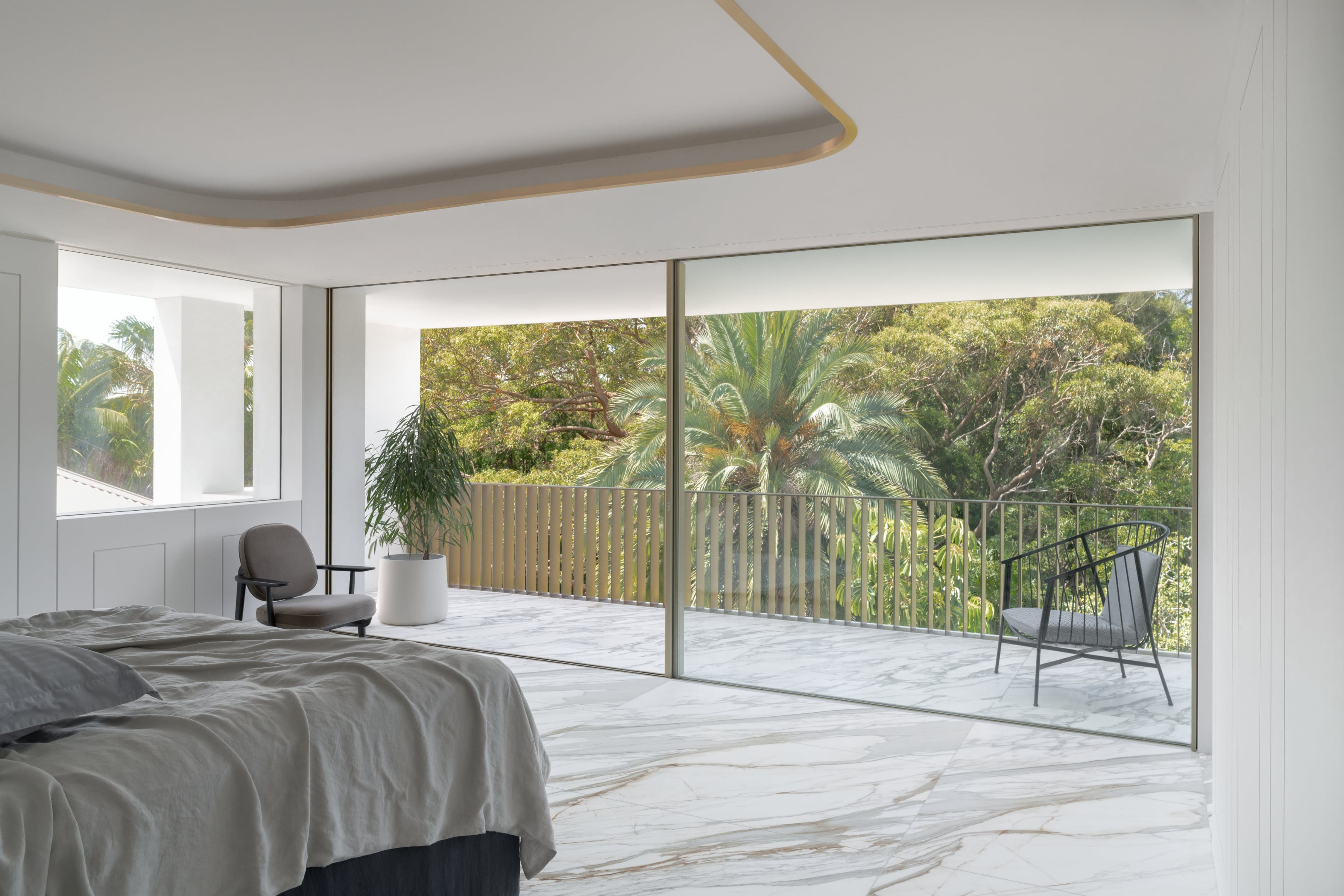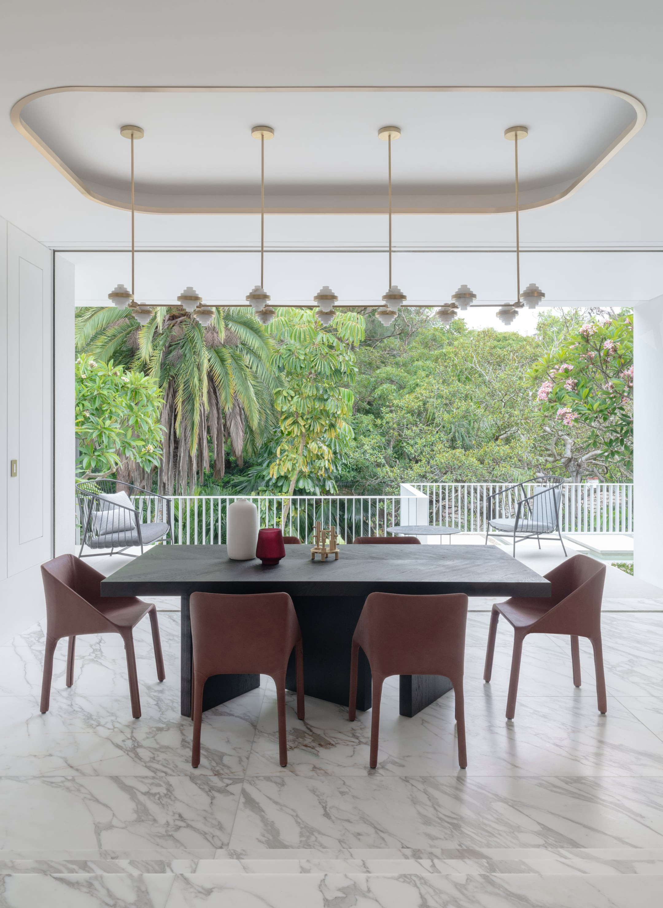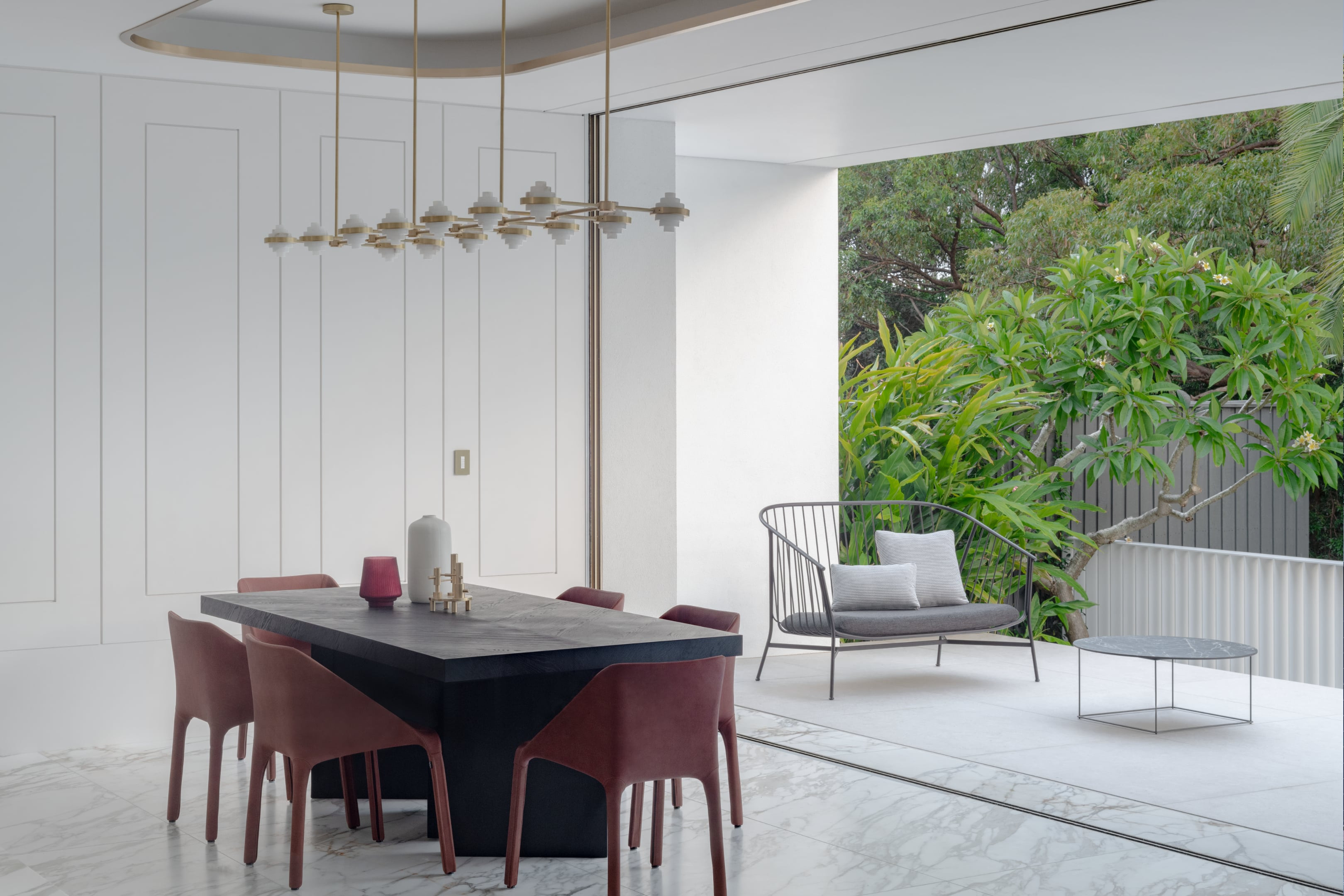 “The doors frame picturesque moments of a tree-filled landscape beyond. Once fully retracted, they allow the space to spill into the outdoors, simultaneously drawing the outside back in.”