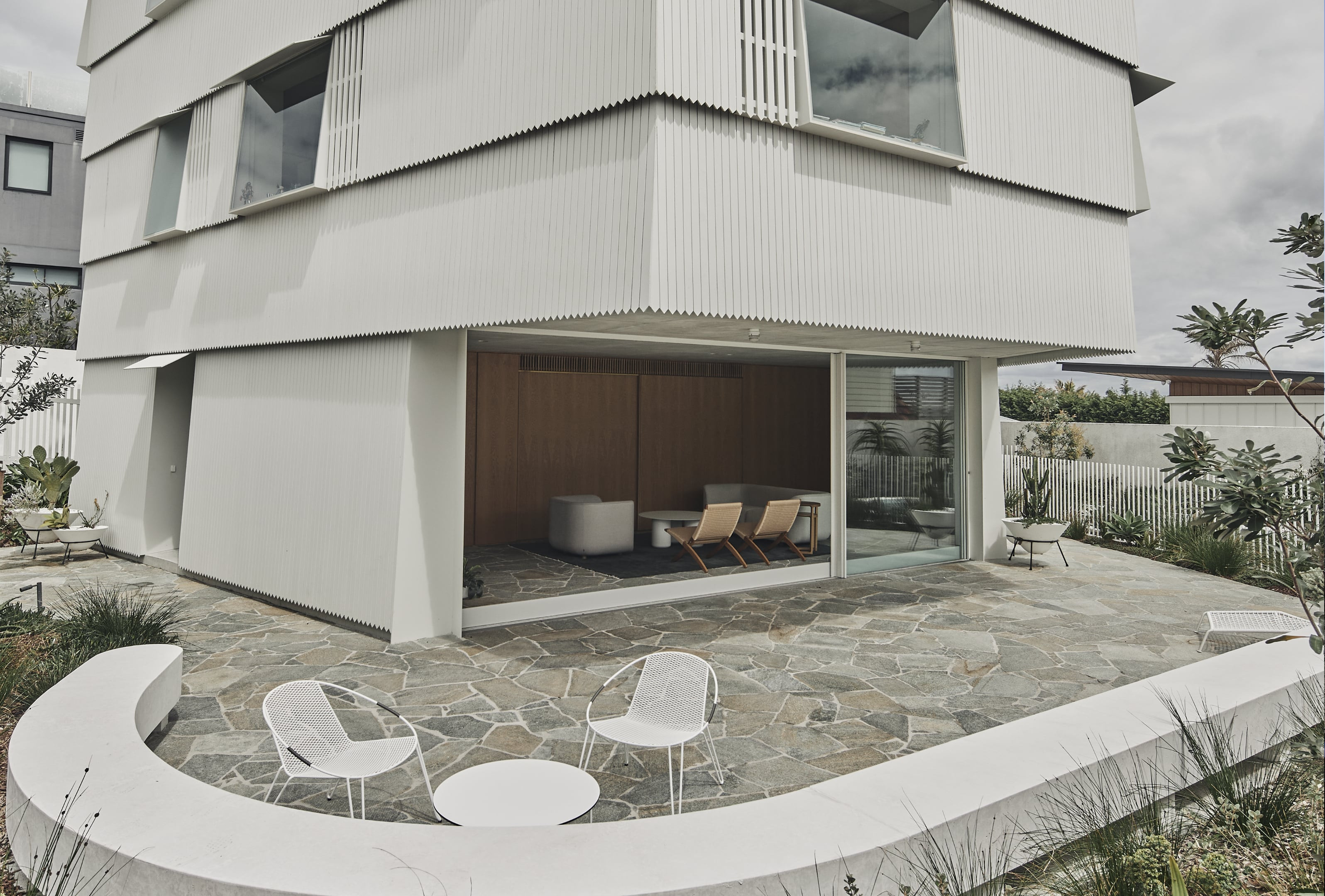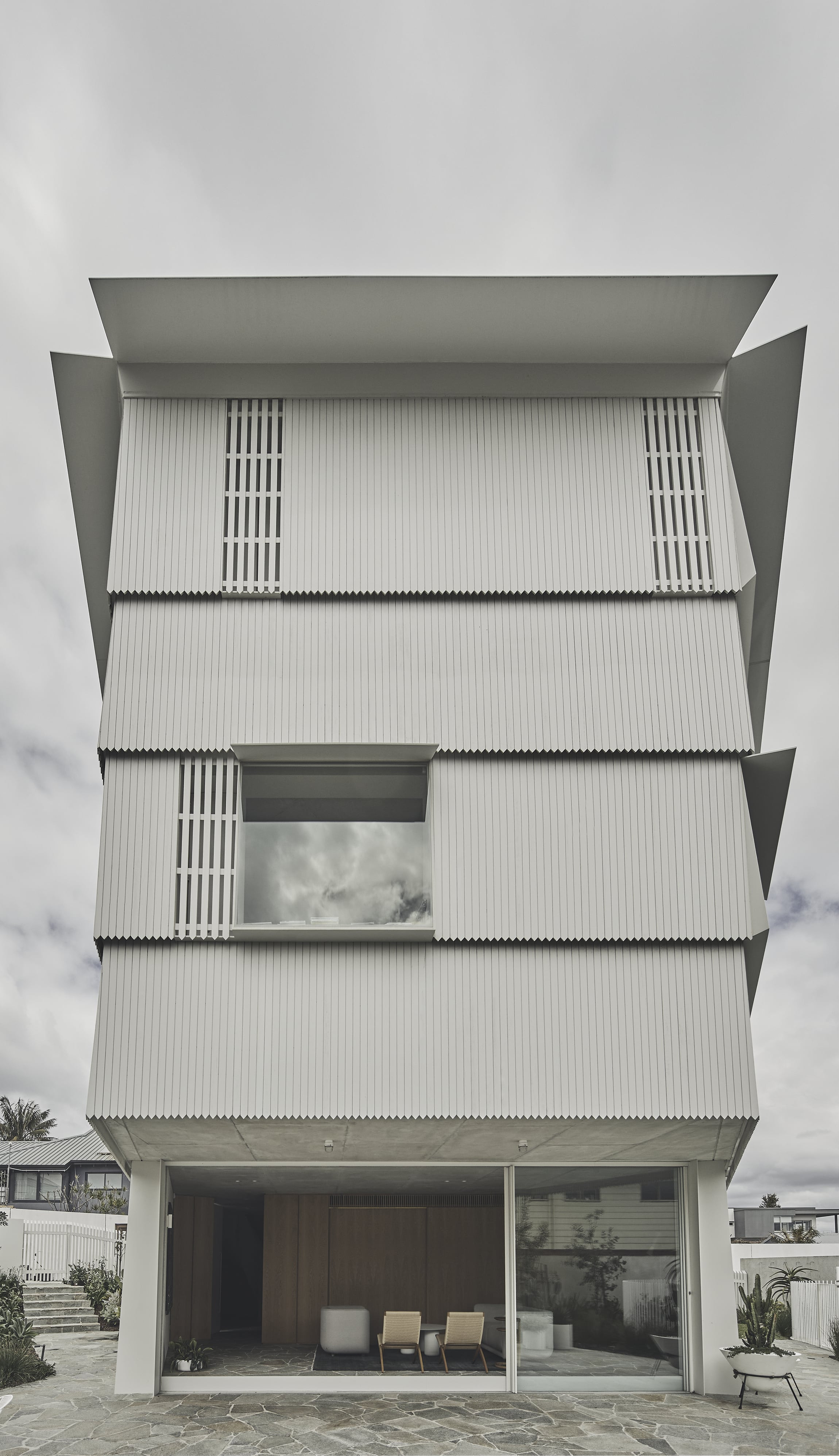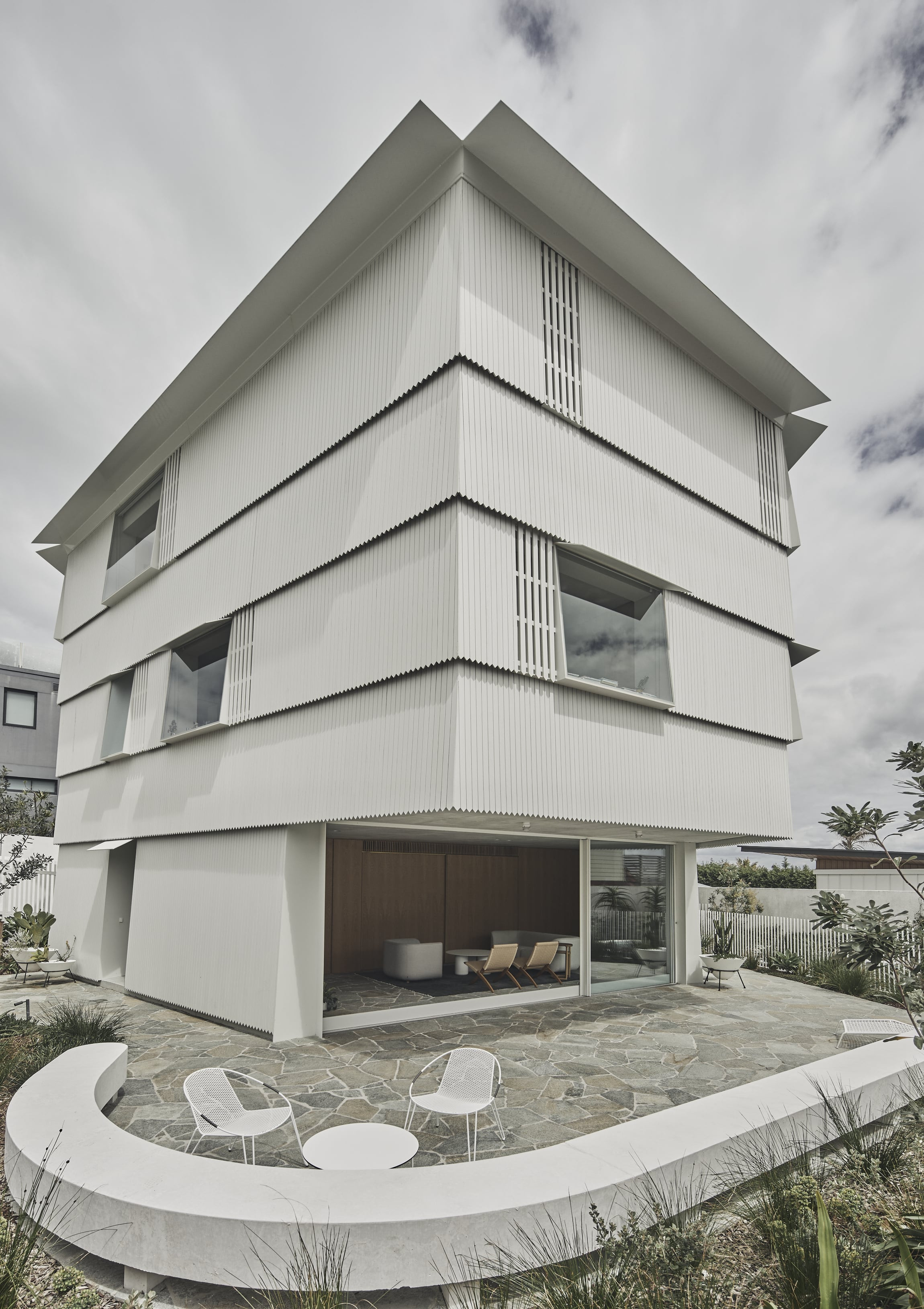 “The façade of the Shiplap House is clad with white painted timber boarding to reference the materiality of the traditional fishing cottages.”