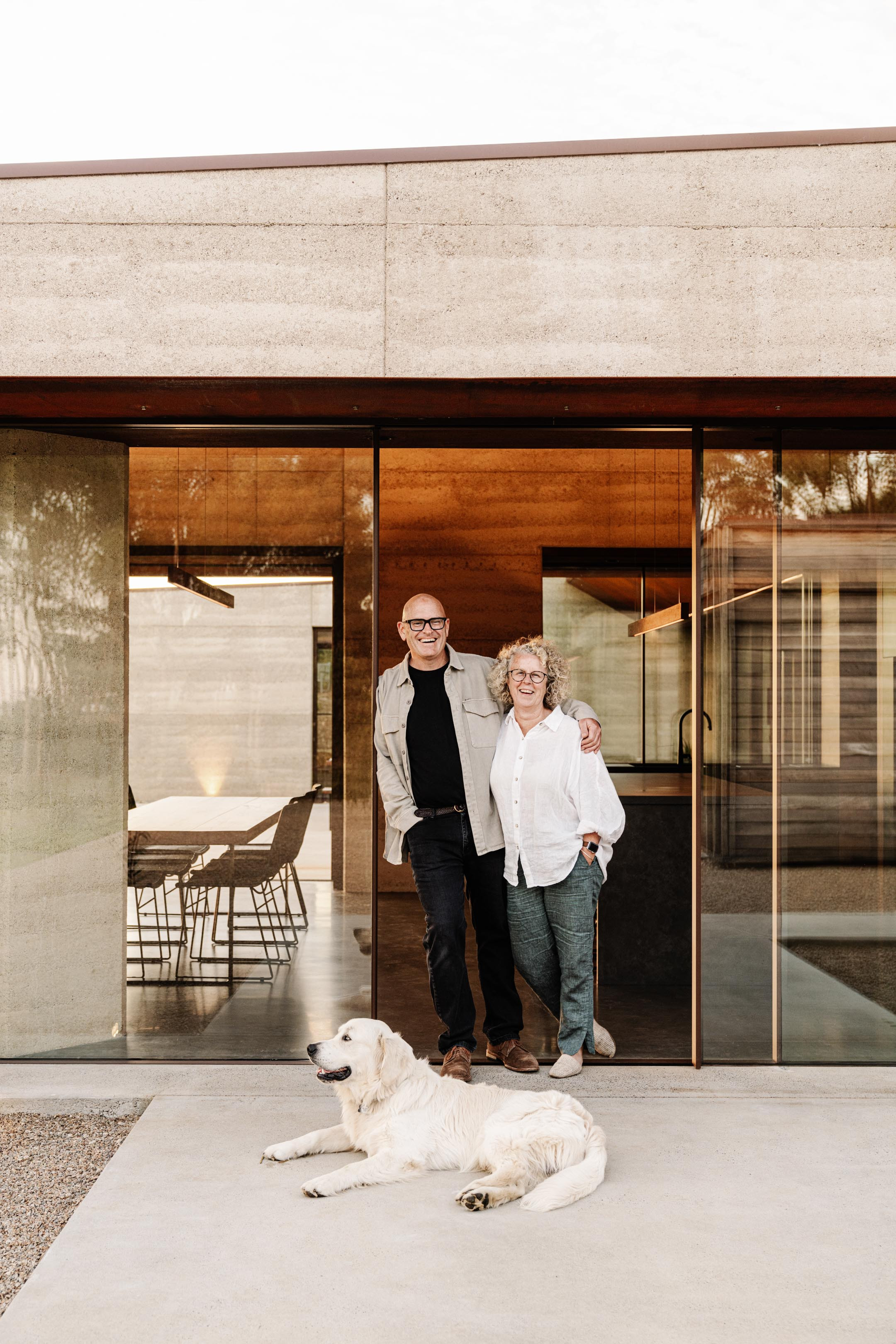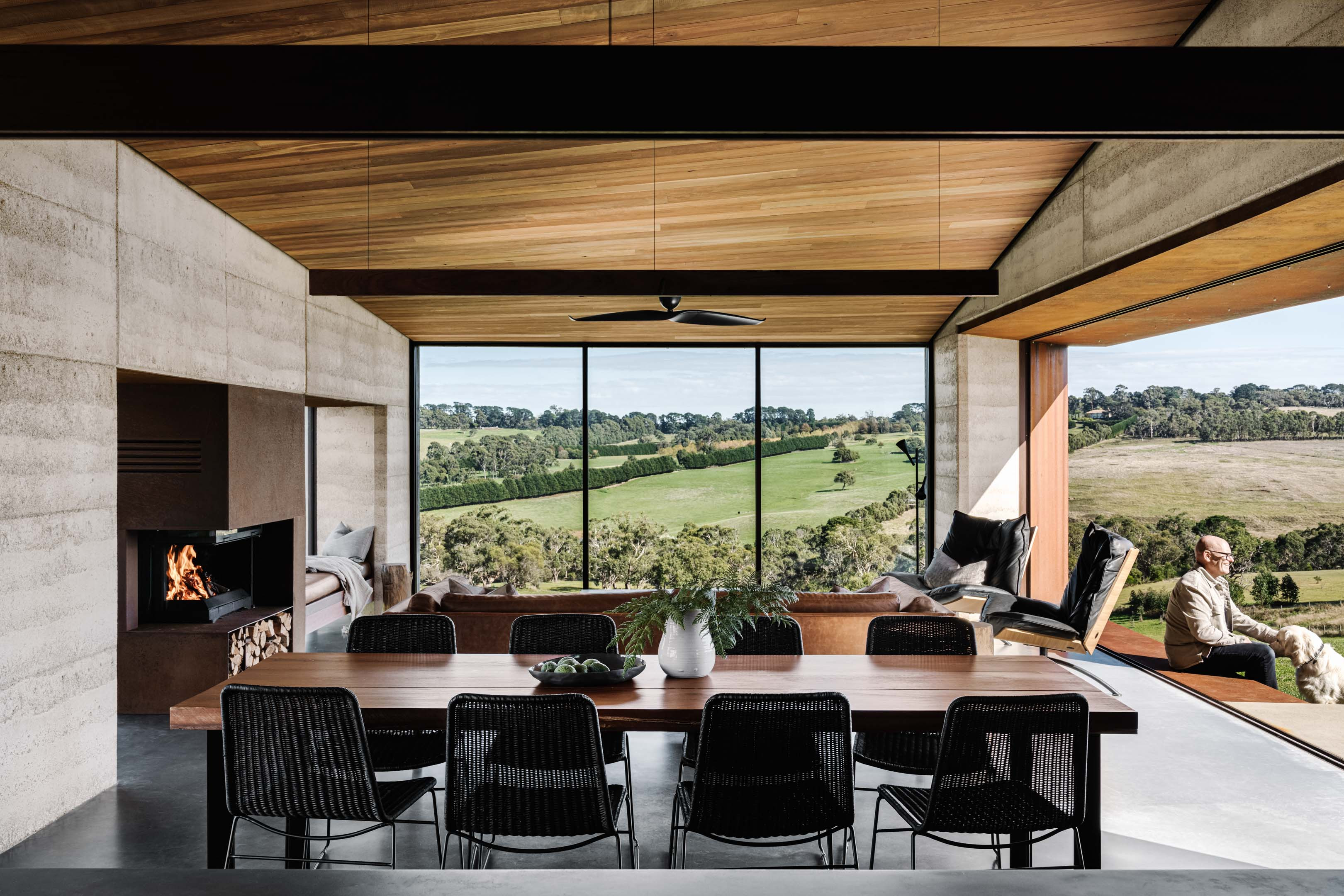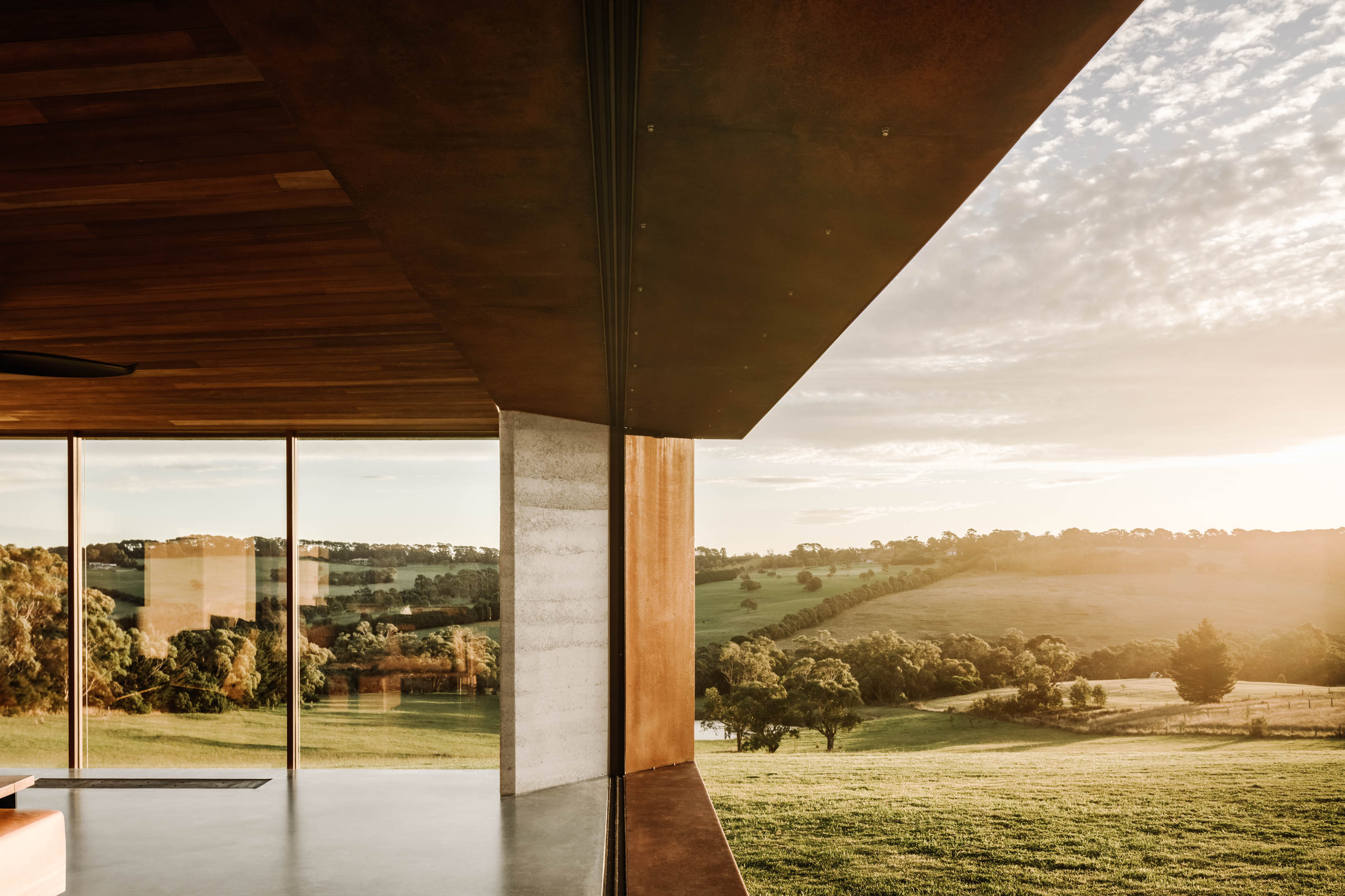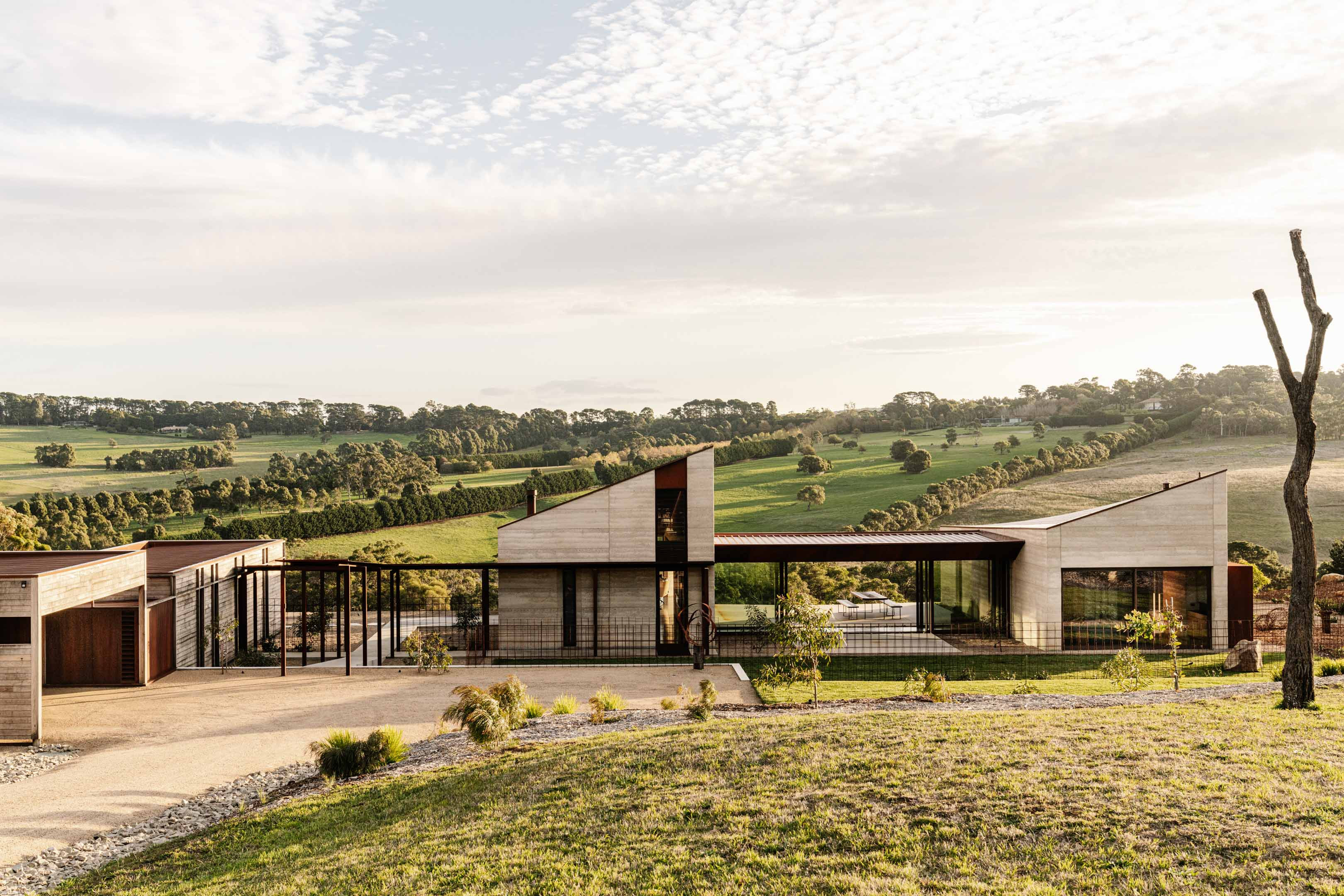 Vitrocsa’s aluminium sliding window profiles feature in a distinctive finish to complement the project’s rammed earth and weathered steel.