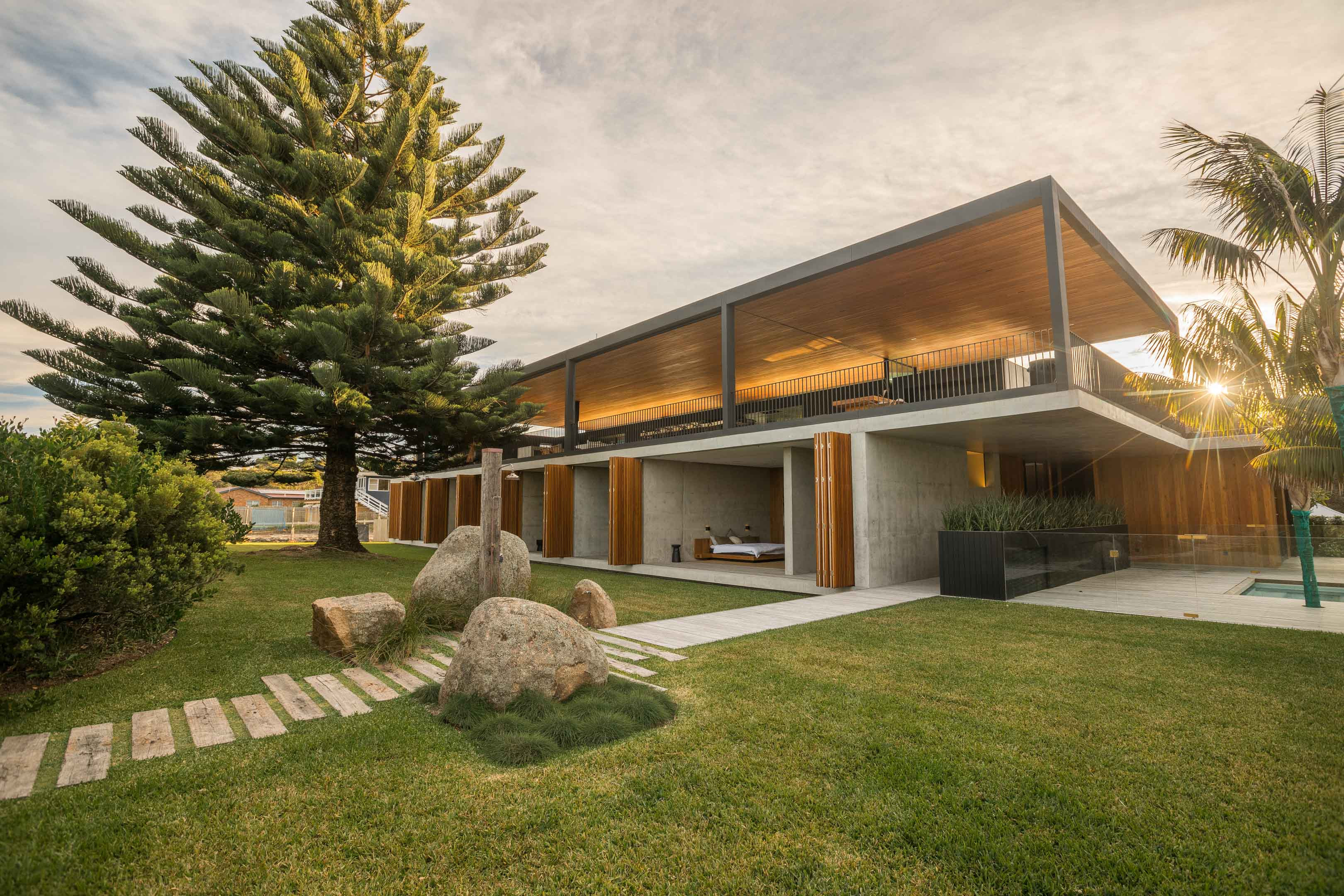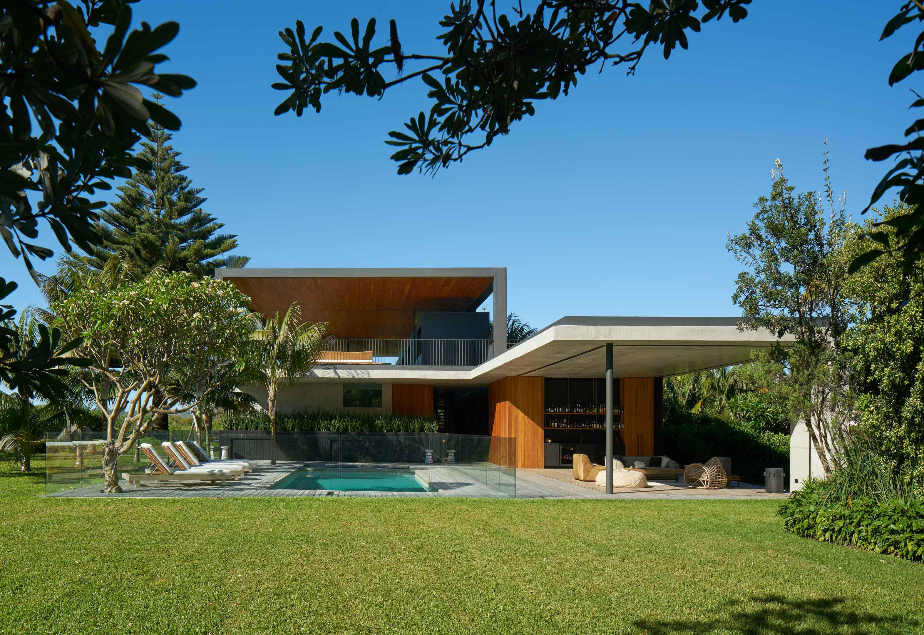 “Essentially a beach house, Sunrise House offers a relaxed sense of place. A ground floor cabana seamlessly opens up to the garden and pool.”