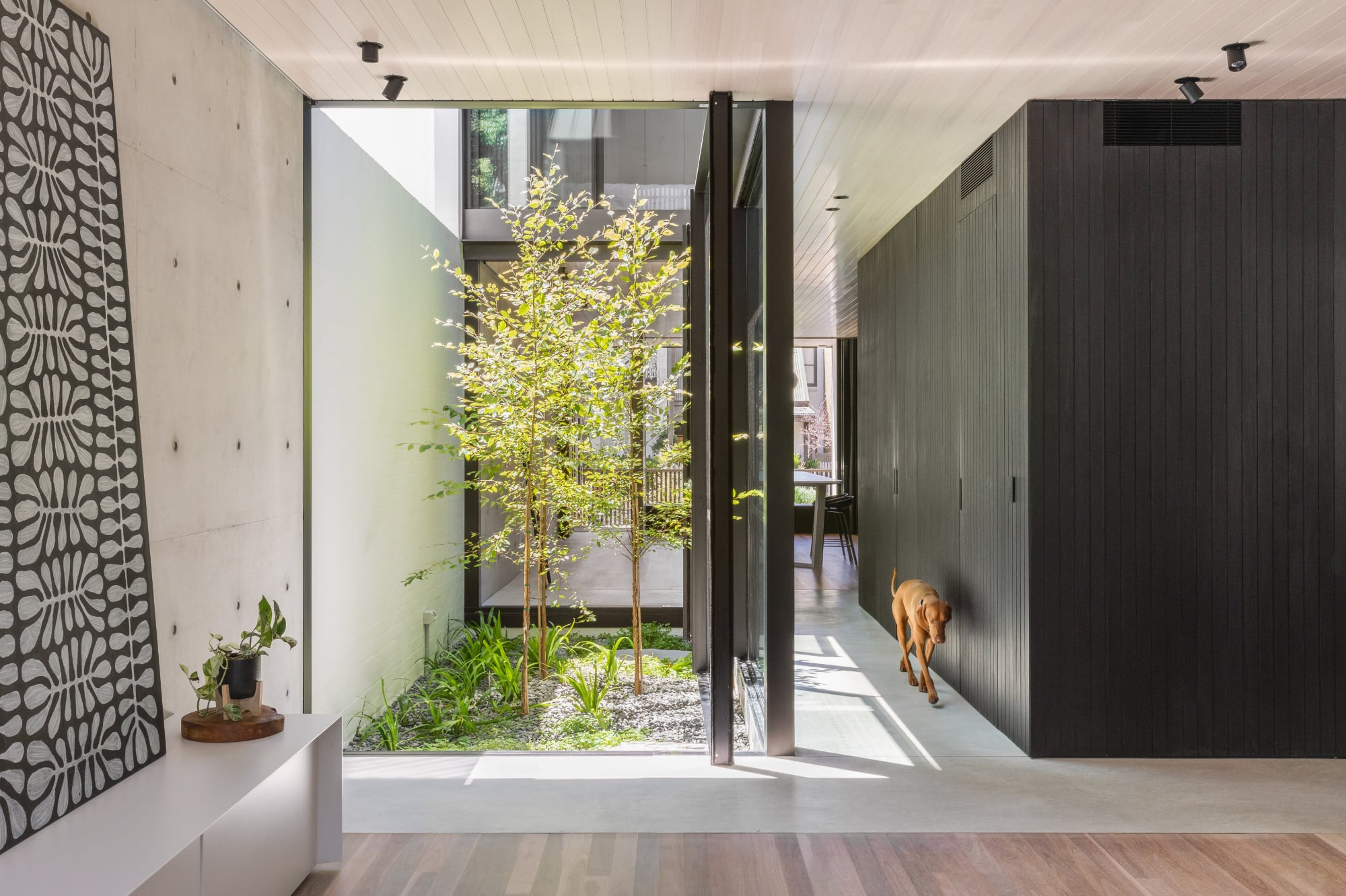 An architect and project manager client wanted the house to have a feeling of loosely connected living spaces and to be both a sanctuary whilst also better connecting to their community. The simple brief was a contemporary four bedroom home, that felt nothing like a terrace. To achieve this we employed oversized protected glazed facades and a fully glazed internal courtyard, generous ceiling heights and an elemental materials palette brought together with skill by the builders and trades with zero tolerance at every corner.
