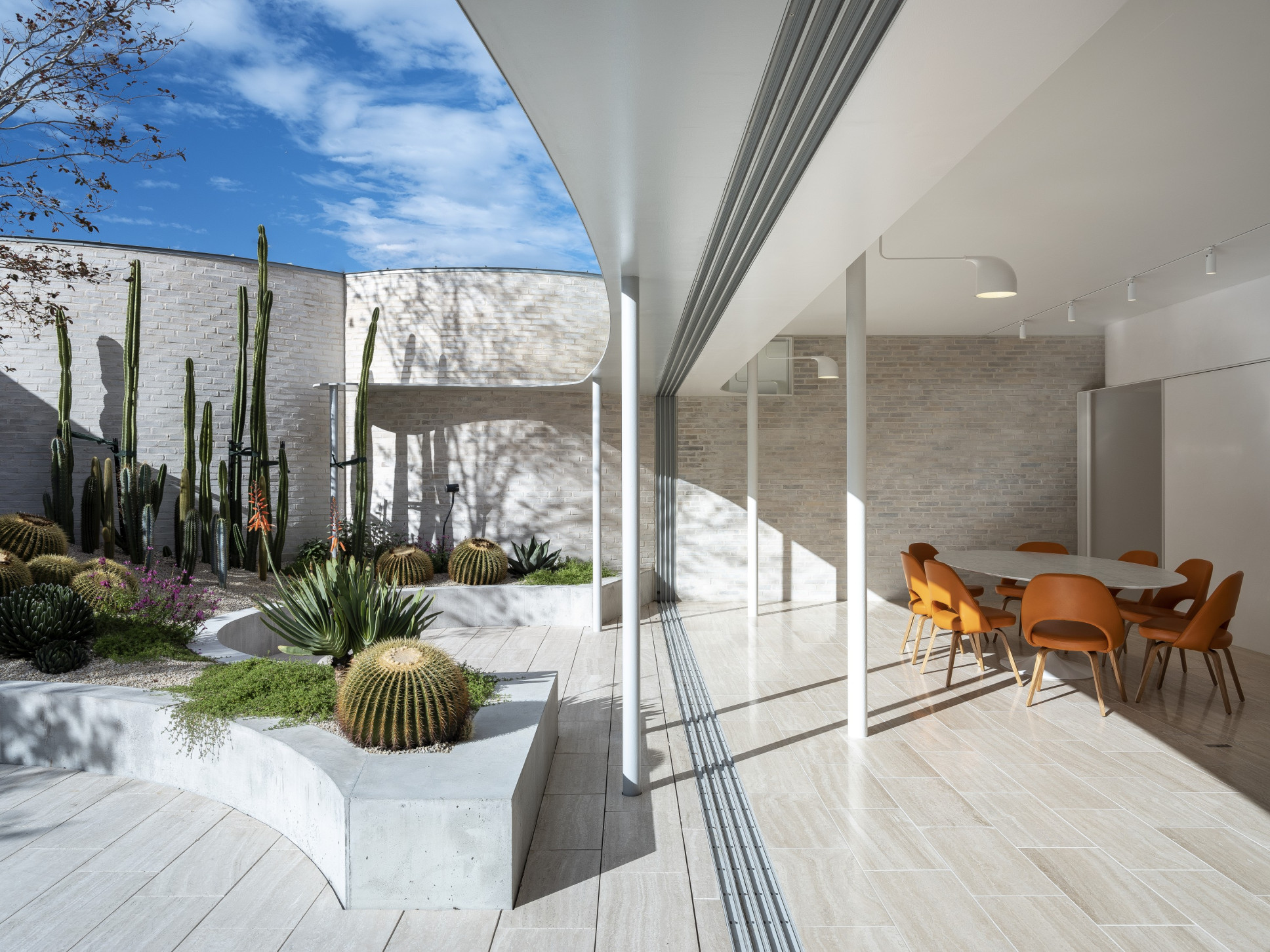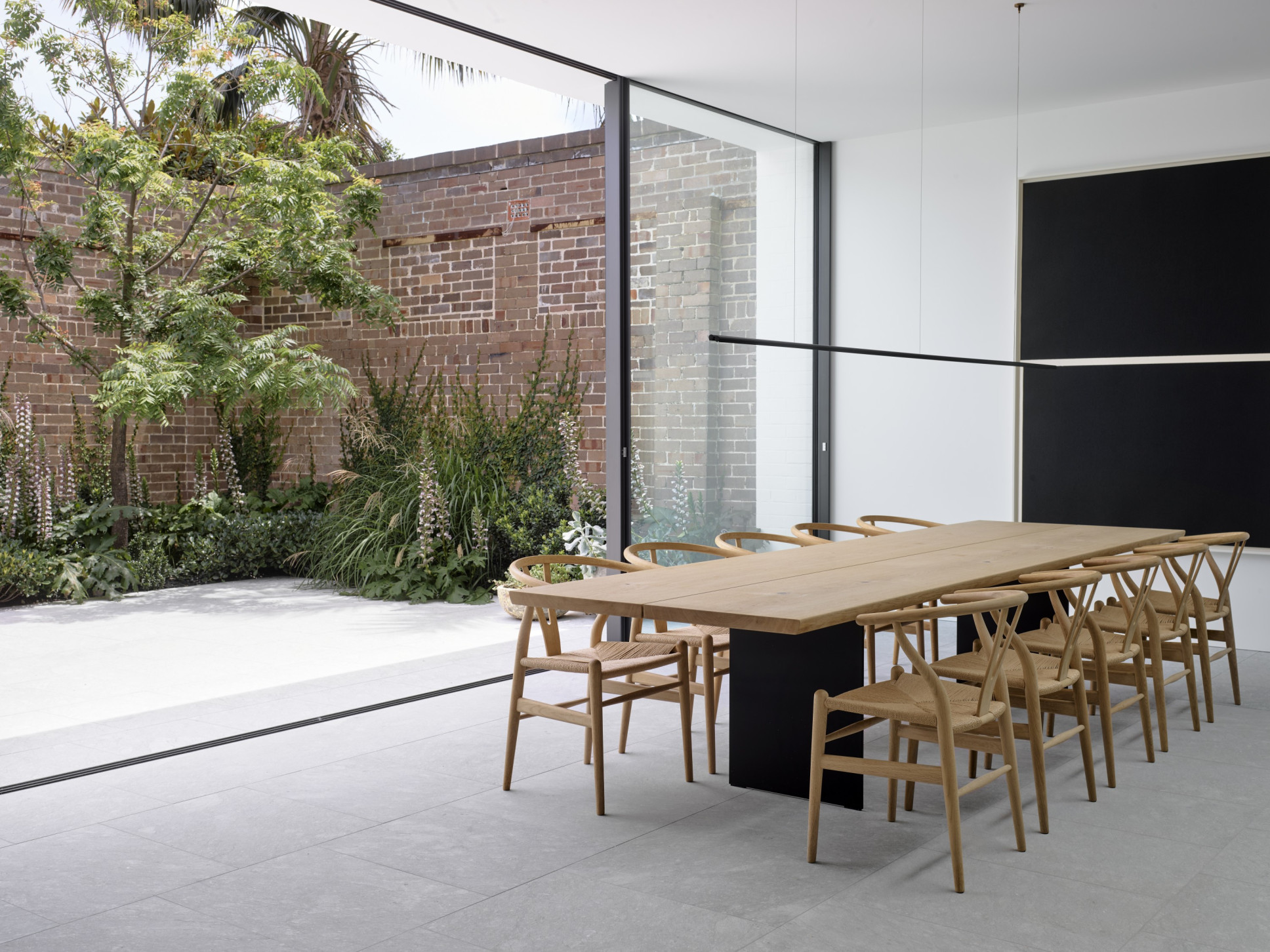 Embedded within the tracks, Vitrocsa’s patented stainless steel bearings enable the movement of monolithic glass panels of up to 18m2 and 1.2t per pane.
