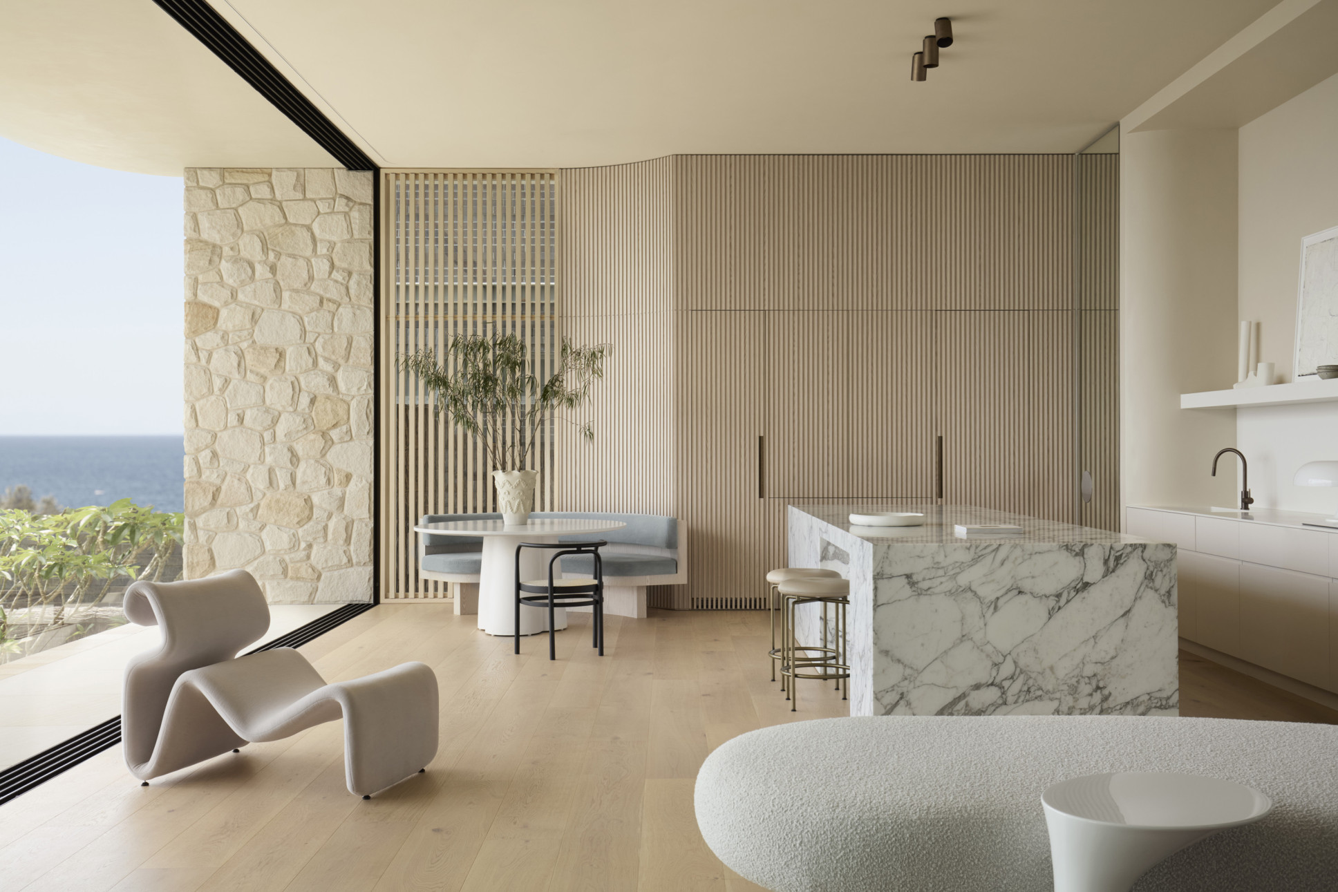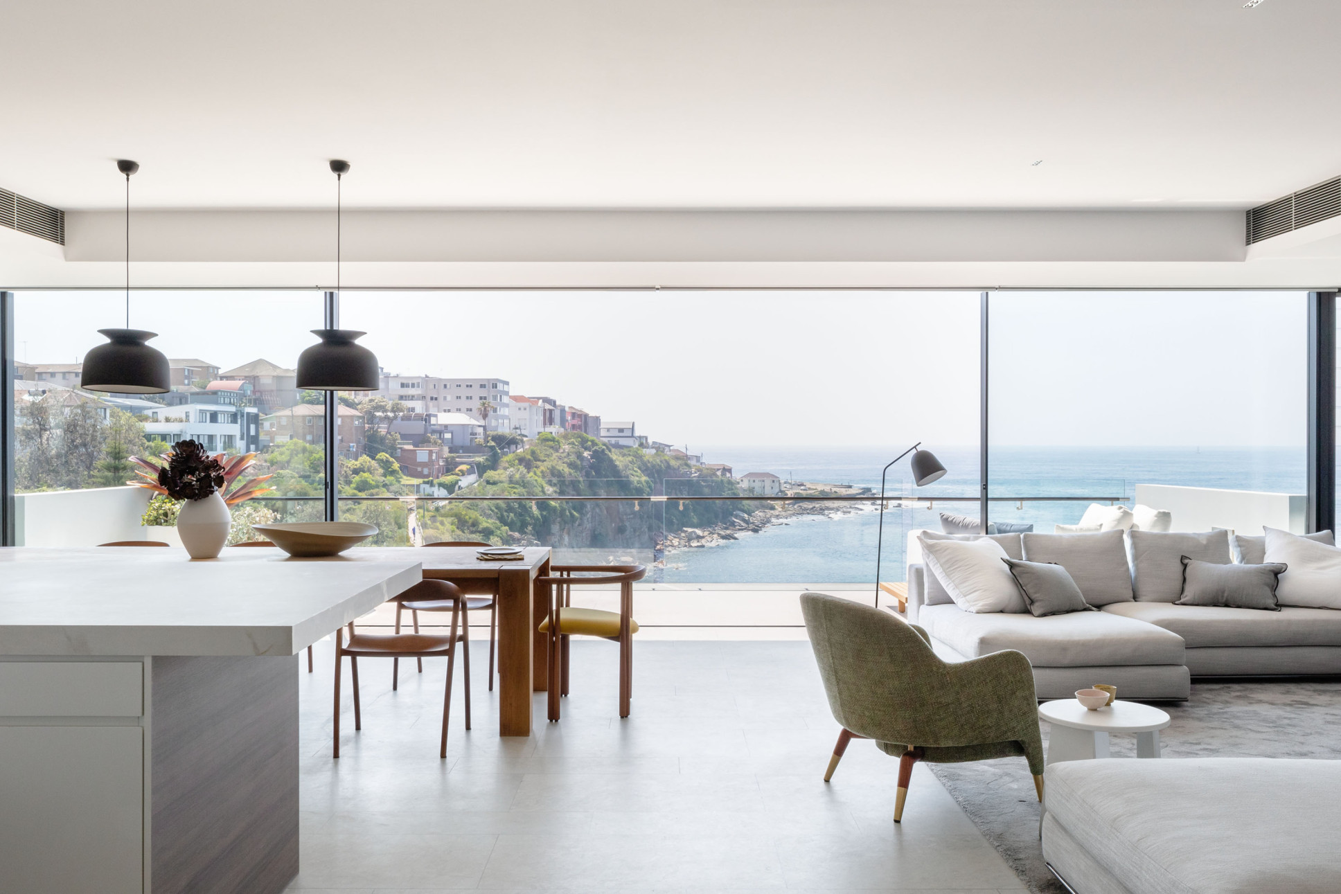 Flush floor tracks, starting at only 32mm wide, create a distinctly seamless finish, eliminating sightlines and maximising the view. 18mm blade-thin interlocks are highly engineered to provide enduring strength. Available in single, double and triple glazing.