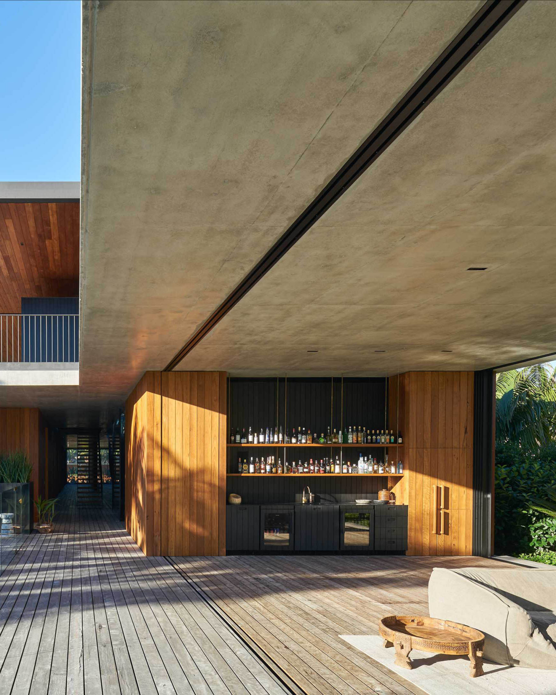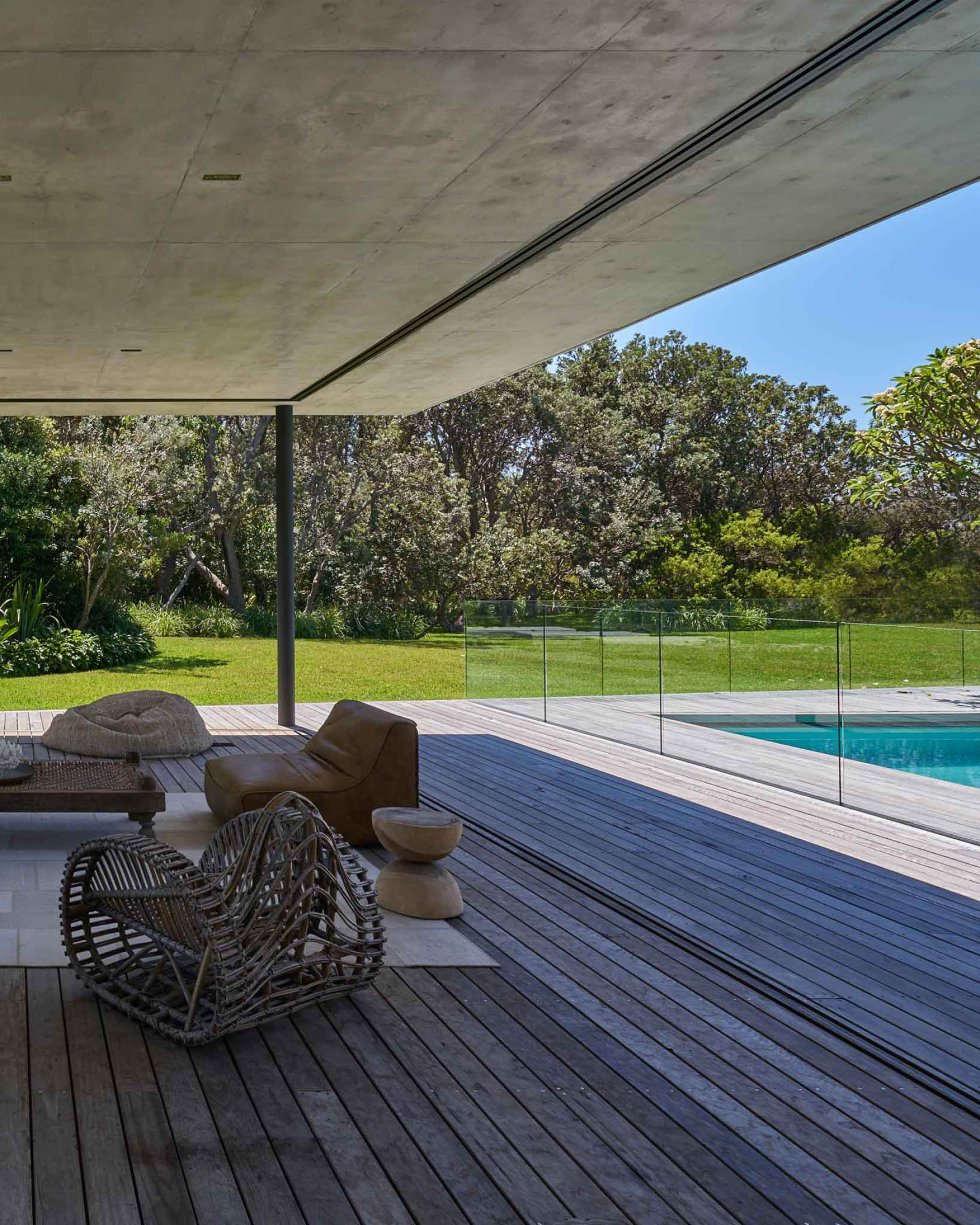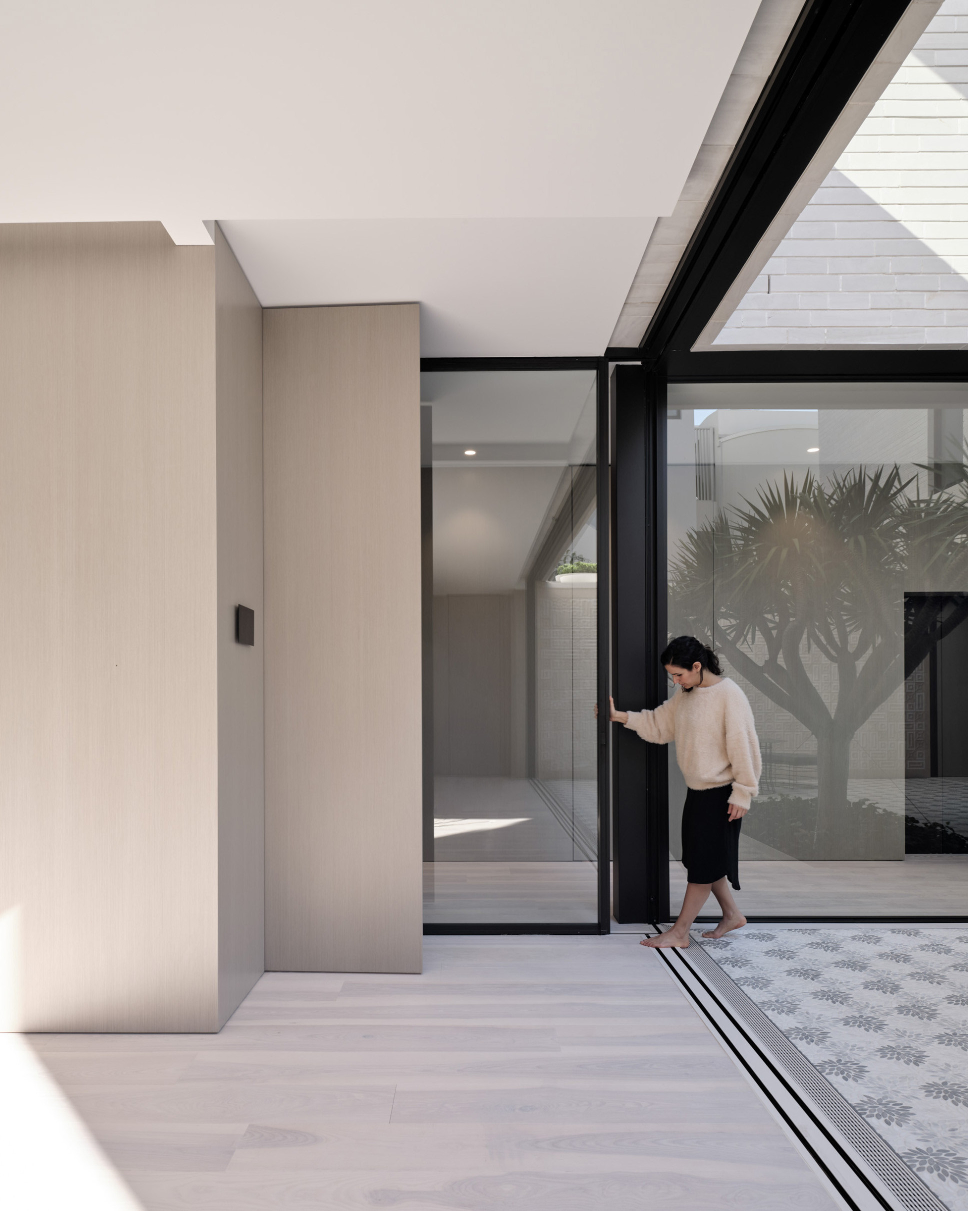 Glass panels pivot around corners and glide through the space, to completely disappear from view.